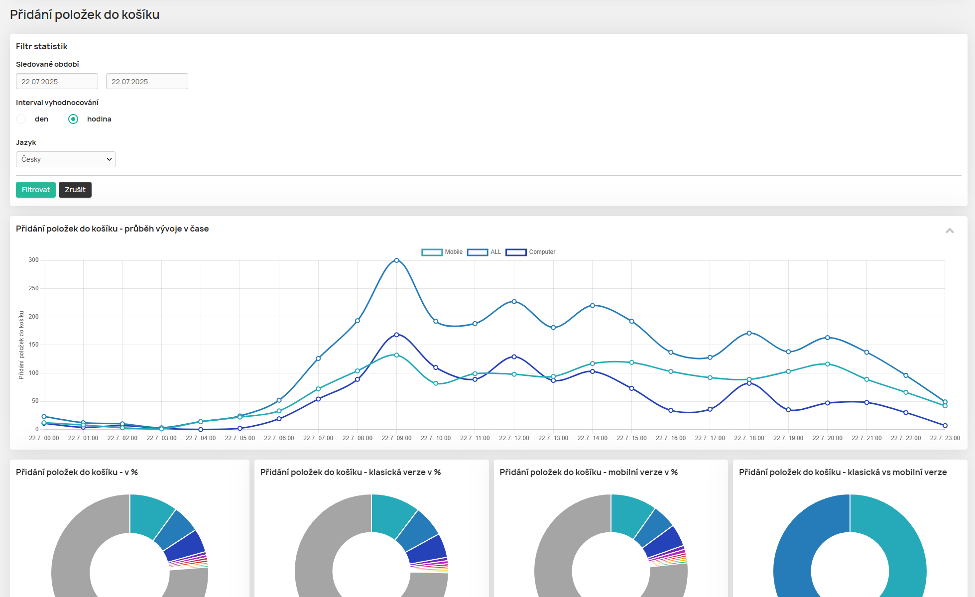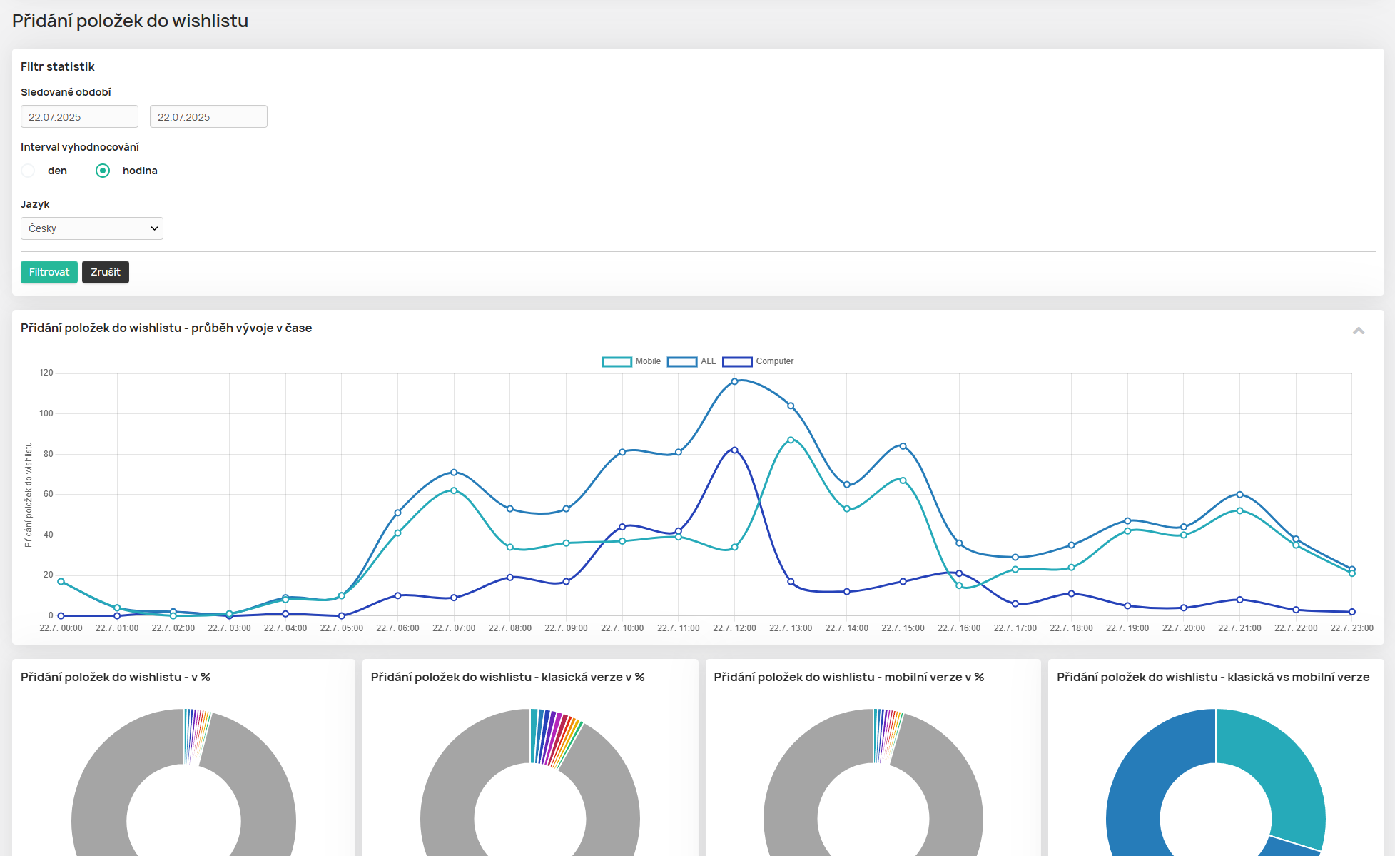 - 📈 Přehled výkonu produktu v čase – kolikrát byl přidán do košíku nebo wishlistu, s vývojem v grafech